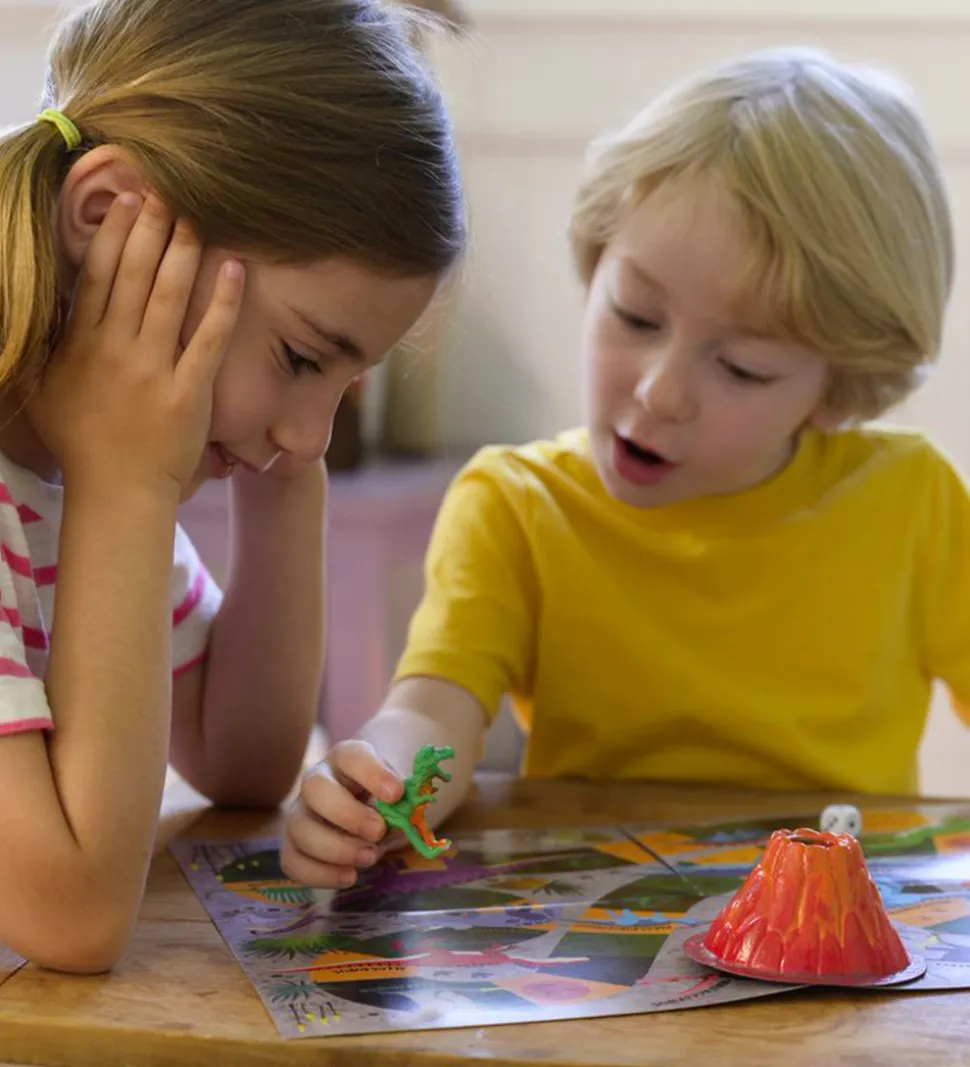 4M dino sættet indeholder en udgravning med et dinosaur skelet, et dinosaur spil, en vulkan med kviksand, et 3D dinosaur støbe- og malesæt, og et sæt til at støbe og male køleskabsmagneter, som lyser i mørket. Dino sættet er en sjov og lærerig oplevelse for de små, og er med til at styrke videnskab, teknologi, engineering, kunst og matematik (STEAM – Science, Technology, Engineering, Art, Maths).