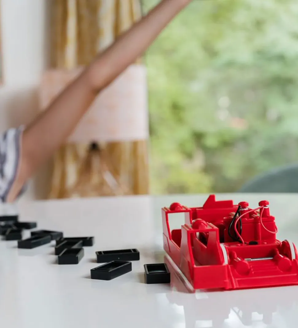4M robotten er sjov og spændende at bygge. Robotten gør det nemt at sætte dominobrikker op på en lige række. Der medfølger alle de nødvendige dominobrikker.