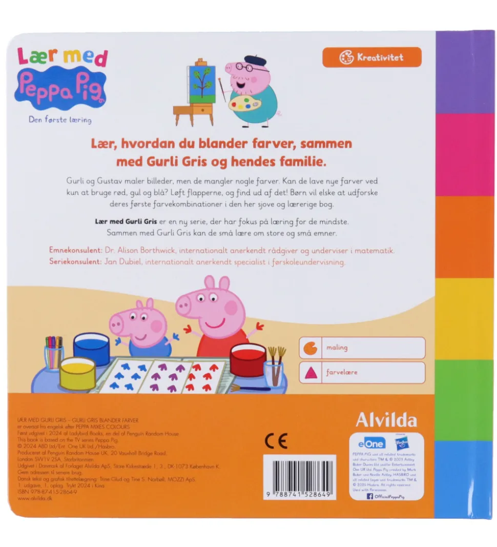 Alvilda bogen præsenterer et interaktivt indhold, der engagerer de små i farveverdens mysterier. Sammen med Gurli Gris kan børn opleve farver og hvad der sker når man blander dem. Ideel første læsning for nysgerrige børn.