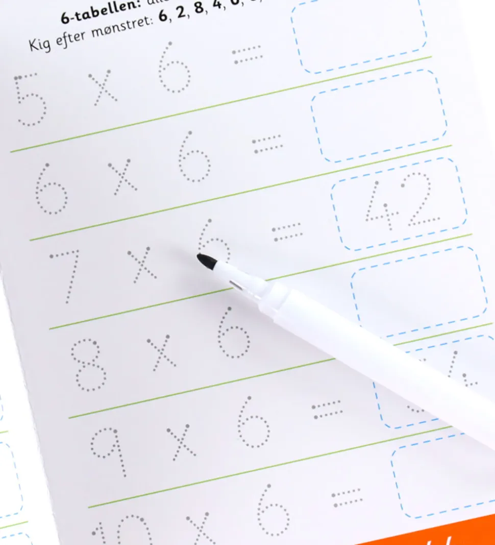 Alvilda opgavebøgerne indeholder alle sjove, små skolestartsopgaver og er med sider, der kan skives på og viskes ud med den medfølgende tusch.