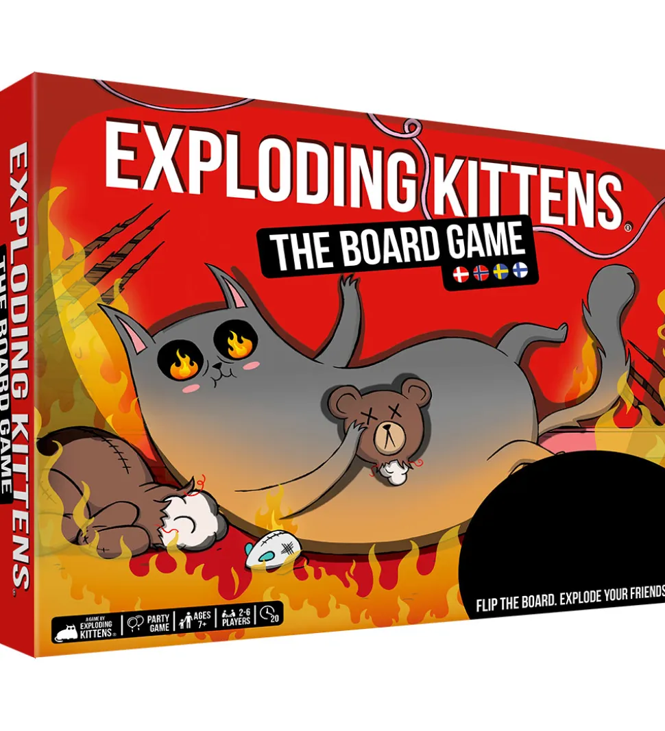 Exploding Kittens The Board Game er et spillebræt hvor man skal lægge fælder og snyde sine modstandere, samt er det fyldt med skøre og sjove illustrationer, hvor nogle felter kan få dig til at sprænge. Vend brættet og prøv “Apokalypse-tilstand” for endnu mere kaos og sjov.
