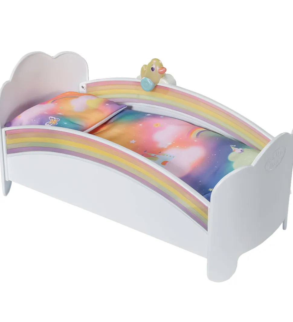 Dukkeseng fra BABY born, perfekt til børnenes lege med dukker. Dukkesengen har et farverigt og fantasifuldt design med regnbuer og søde motiver, som skaber en hyggelig atmosfære for børnene. BABY born’s dukkeseng er ideel til at stimulere børns fantasi og kreativitet, samtidig med at de lærer om pleje og omsorg.