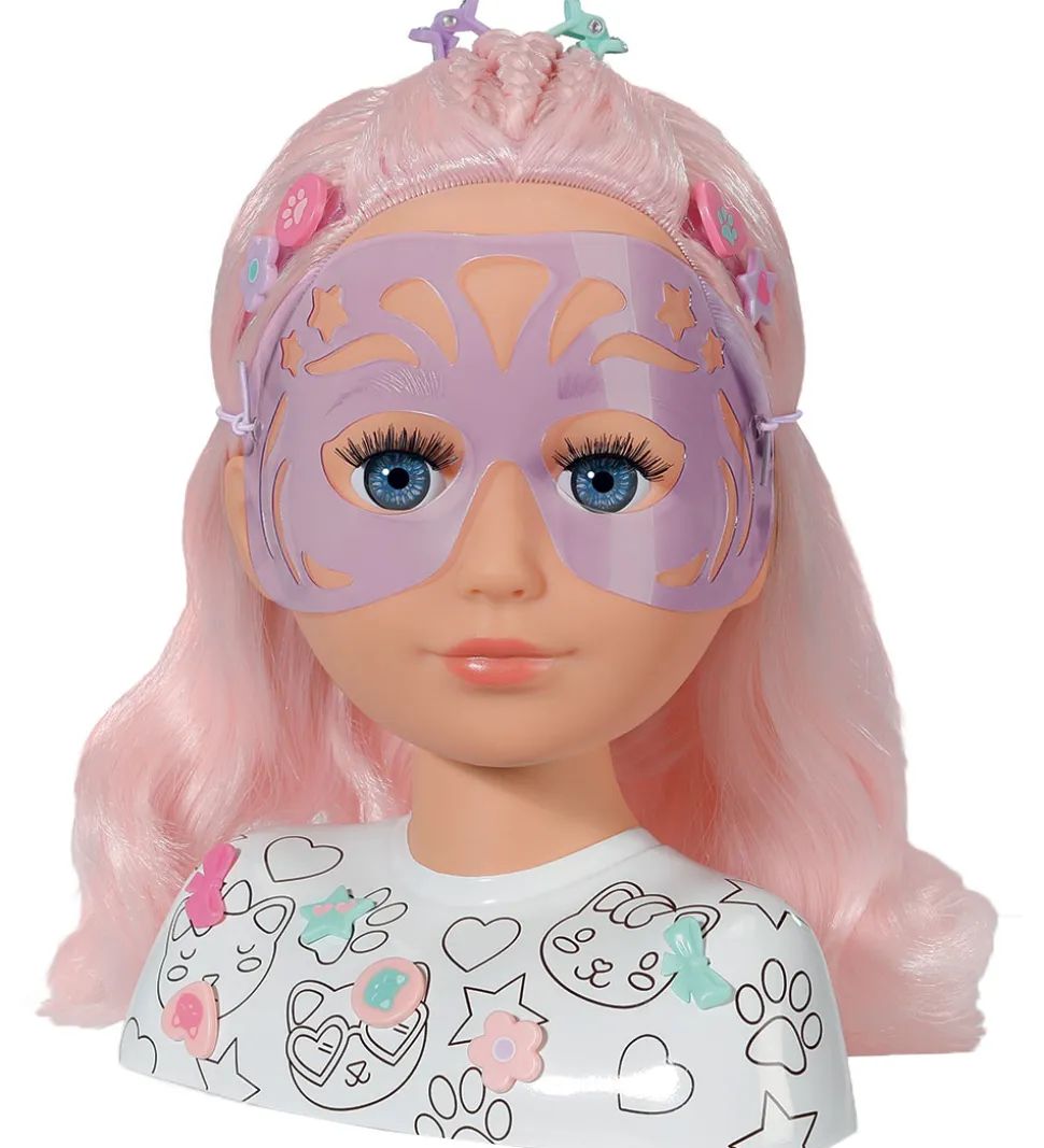 Baby Born sminkehovedet er pefekt til de kreative små, som elsker at lege stylist. Sæt håret i flotte frisurer, lav en udsøgt makeup med skabelonen og makeup-tusserne eller brug tusserne til at style sminkedukkens overkrop.