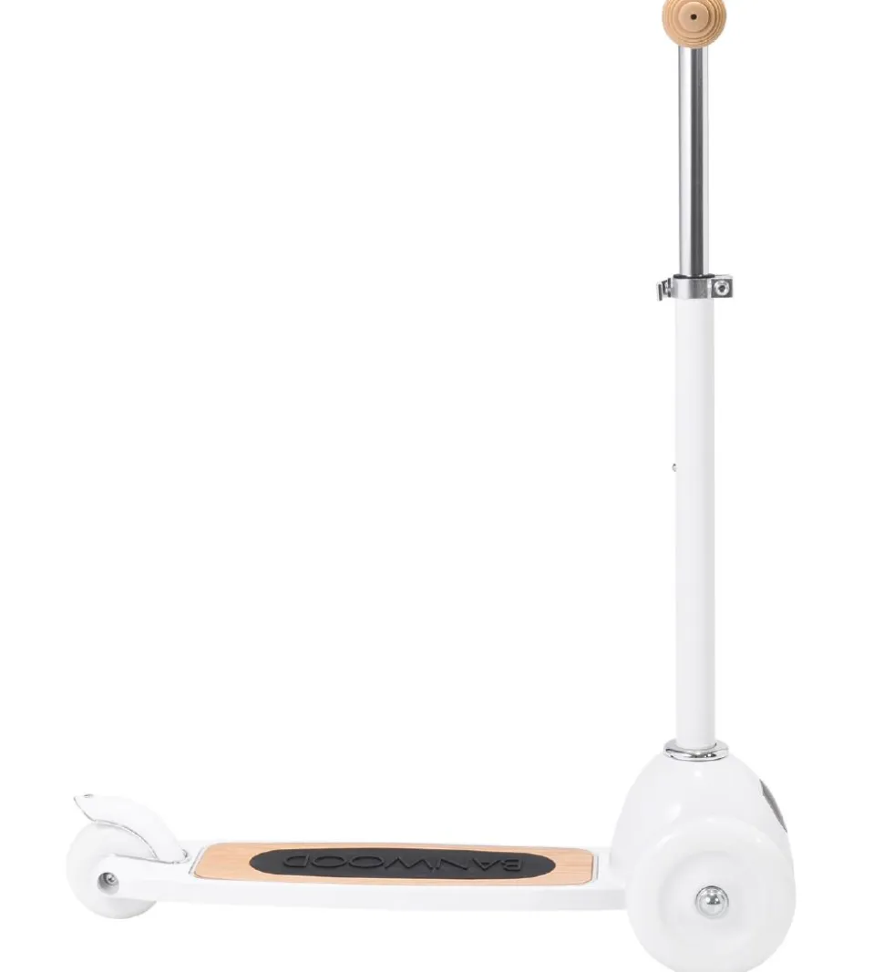 Banwood løbehjulet har to store hjul foran og et lille hjul bagpå med en fodbremse. Løbehjulet har en bred plade af eg med en sort gummistribe til at stå på, så barnet står stabilt. Styret kan justeres i tre højder, og det har håndtag af gummi, som giver et godt greb.