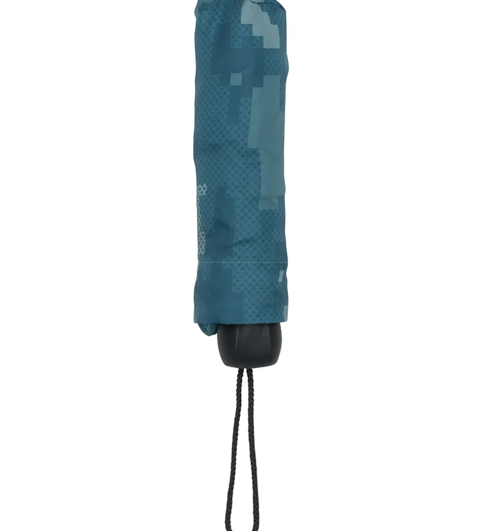 Smart Beckmann paraply i grønne nuancer med et smart mønster med forskellige former og små prikker. Paraplyen er let at slå ud og i, og stangen har et rundt håndtag nederst med en strop, som kan tages omkring håndleddet. Når paraplyen pakkes sammen, kan skærmen holdes på plads med en praktisk rem med velcro.