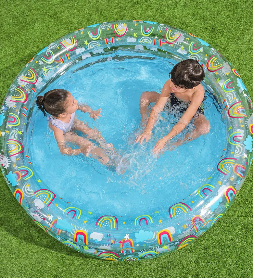 Fint Bestway badebassin i transparent med regnbueprint i flotte farver.