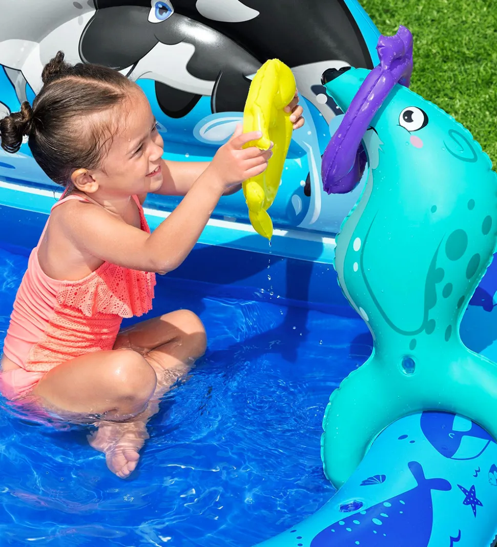 Bestway legebassinet er både til leg og badning samtidig, så det er perfekt til de små, når det er varmt udenfor, og de har brug for at blive kølet ned. Det har følgende sjove aktiviteter: