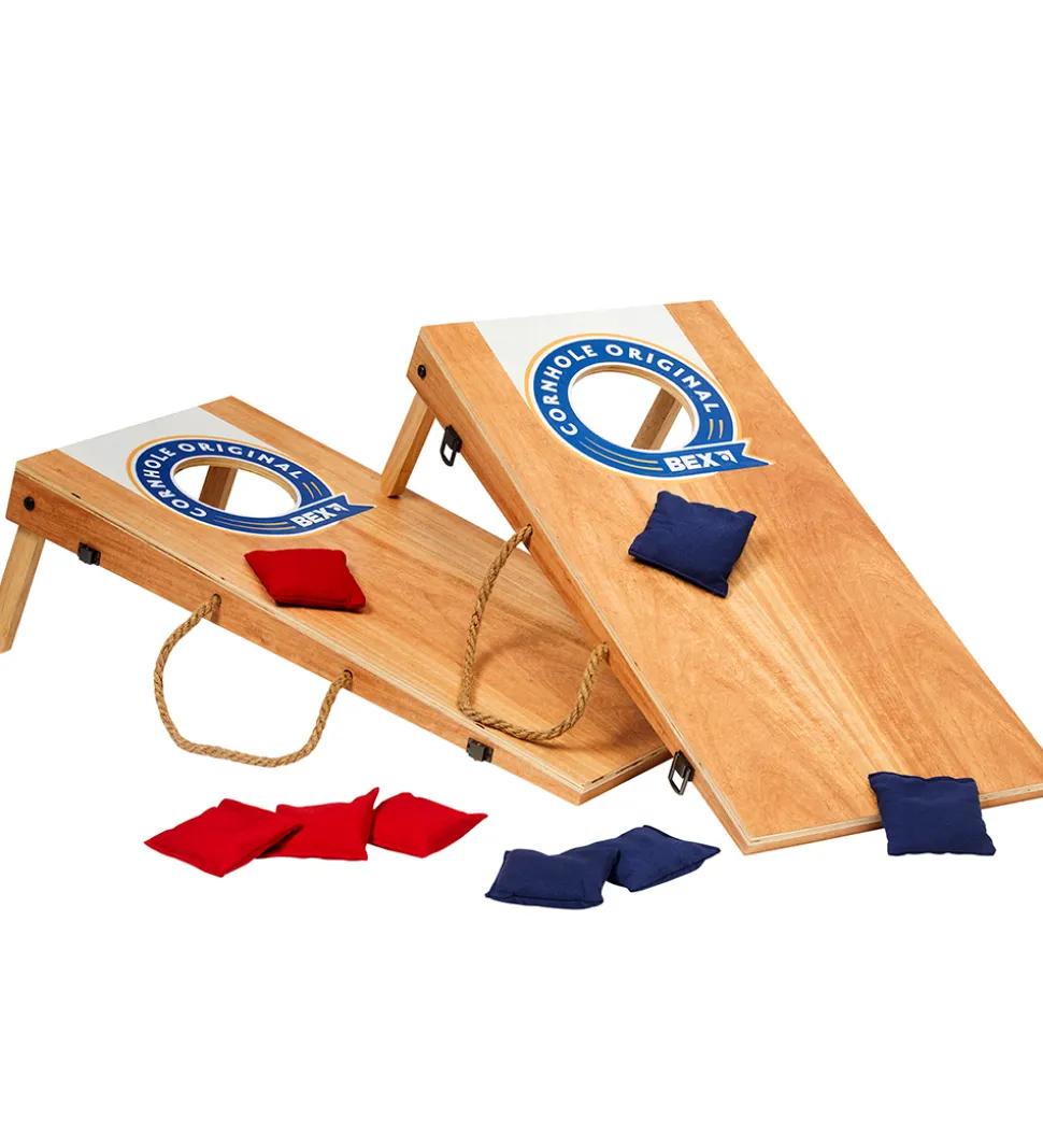Fedt Bex Sport spil i form af et ærteposespil med to målplader i træ og to sæt ærteposer á fire styk i rød og blå.