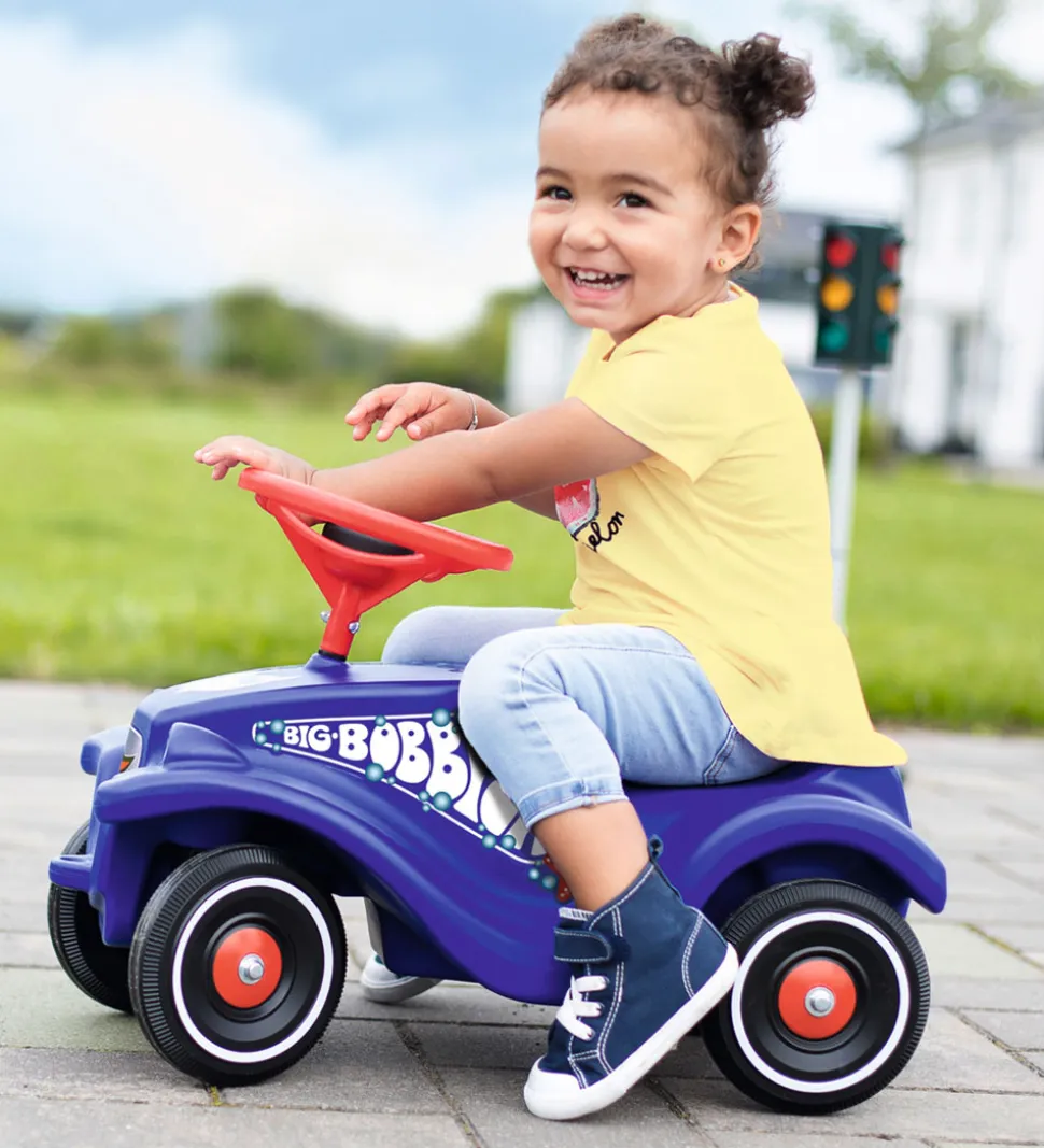 Big bilen har et ergonomisk design og en stabil konstruktion, så barnet sidder godt. Ved rattet sidder et horn, som siger en lyd når man trykker på det. Foran og bagpå er der et anhængertræk, hvor man kan sætte tilbehør og anhængere fra Big fast. Bilen kan både bruges indendørs og udendørs, og styrker barnets motorik på en sjov måde.
