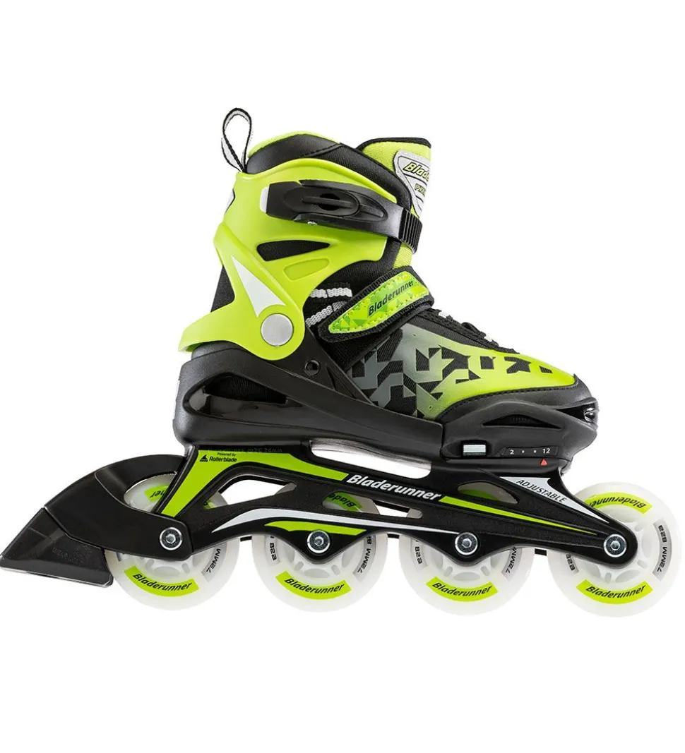 Bladerunner rulleskøjterne er en inliners-model. Skaftet er dels af blødt tekstil og dels af en fast skal, så rulleskøjterne både er behagelige og stabile på samme tid. Rulleskøjterne lukkes med snørebånd, en velcrorem og en plastspænde, som kan justeres, så de er nemme at få af og på.
