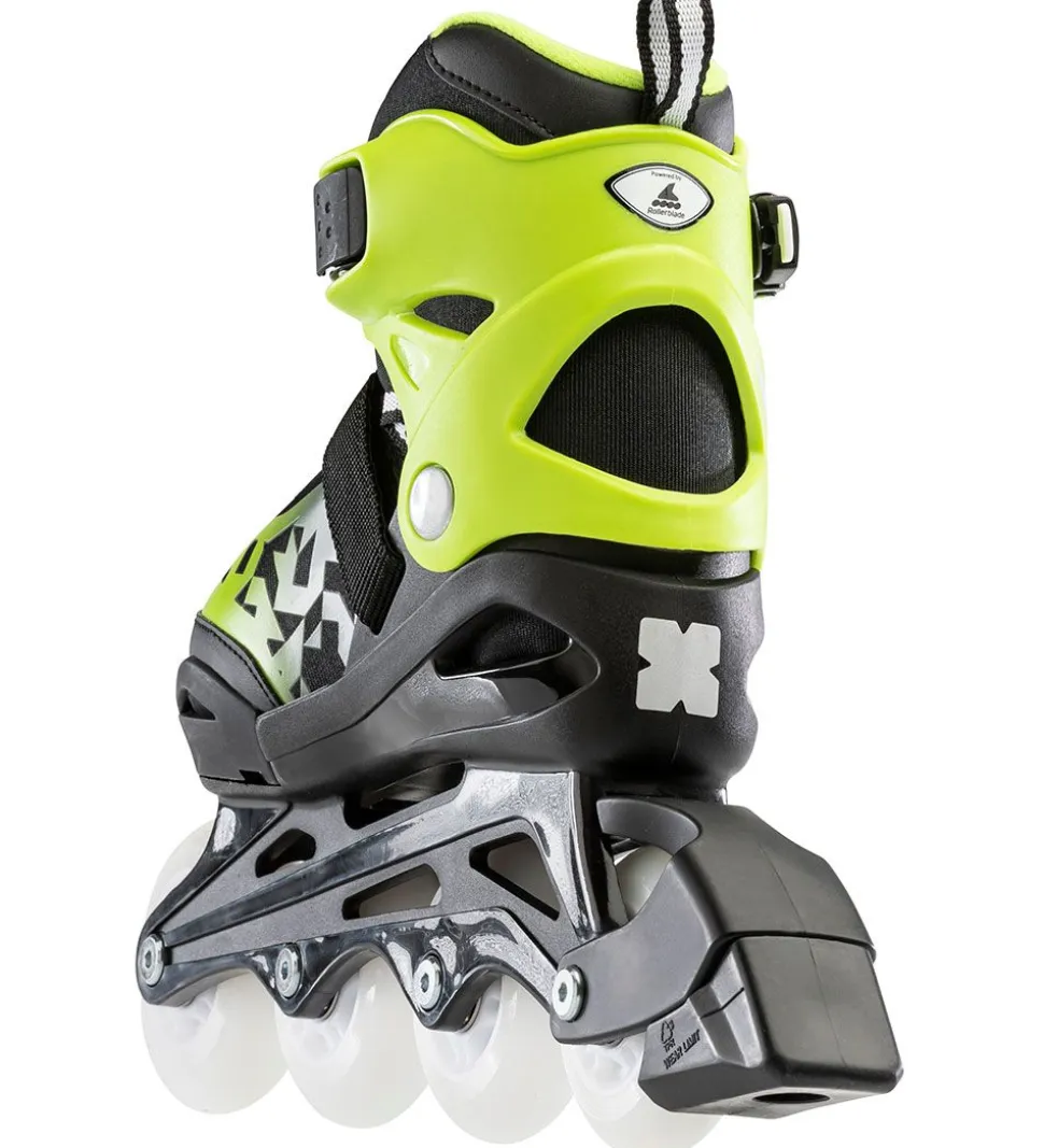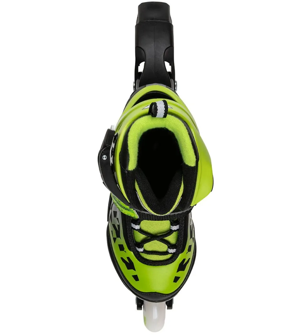 Søde Bladerunner rulleskøjter i sort og grøn med LED lys i hjulene, så du kan holde øje med dit barn, selv hvis de ruller i mørke.
