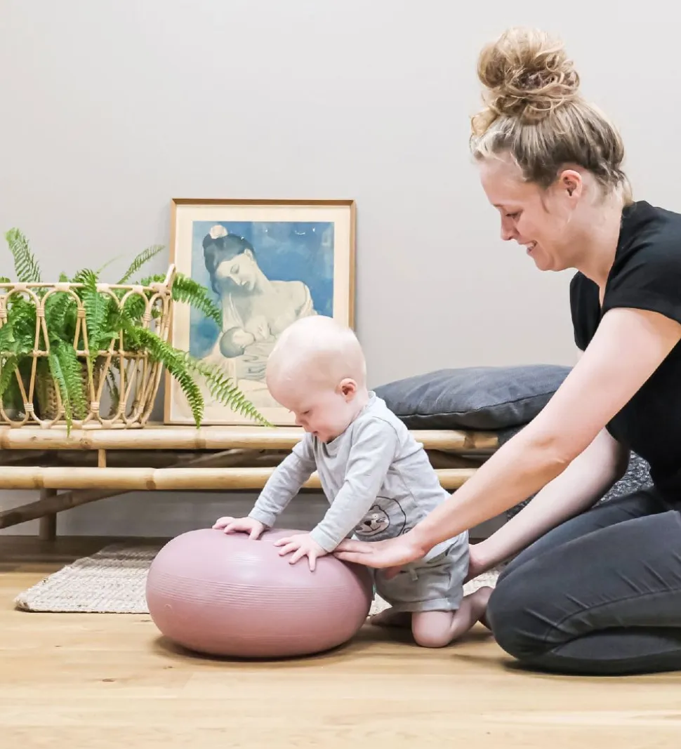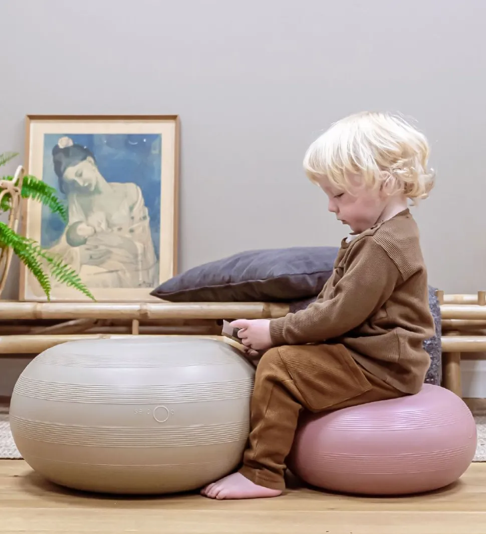 Hvis man trykker donutten ned mod gulvet, opstår der et vacuum, så den sætter sig fast. Så har man en sjov og stabil pude, der fungerer som afsæt til masser af tumleleg. Det er kun fantasien, der sætter grænser.