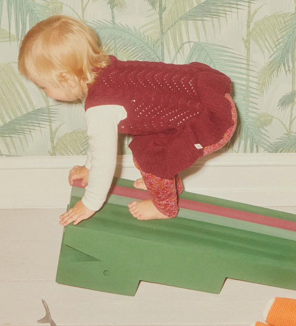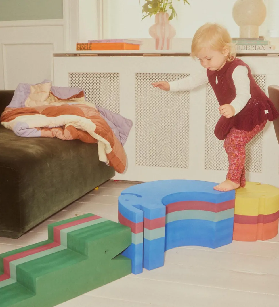 Krokodillen udfordrer sanserne hos små og store børn. Her kan det lille barn øve sig i at gå op ad trapper, hoppe ud fra forskellige højder fra krokodillens skrå ryg eller forsøge at holde balancen, når krokodillen bliver vent på hovedet.