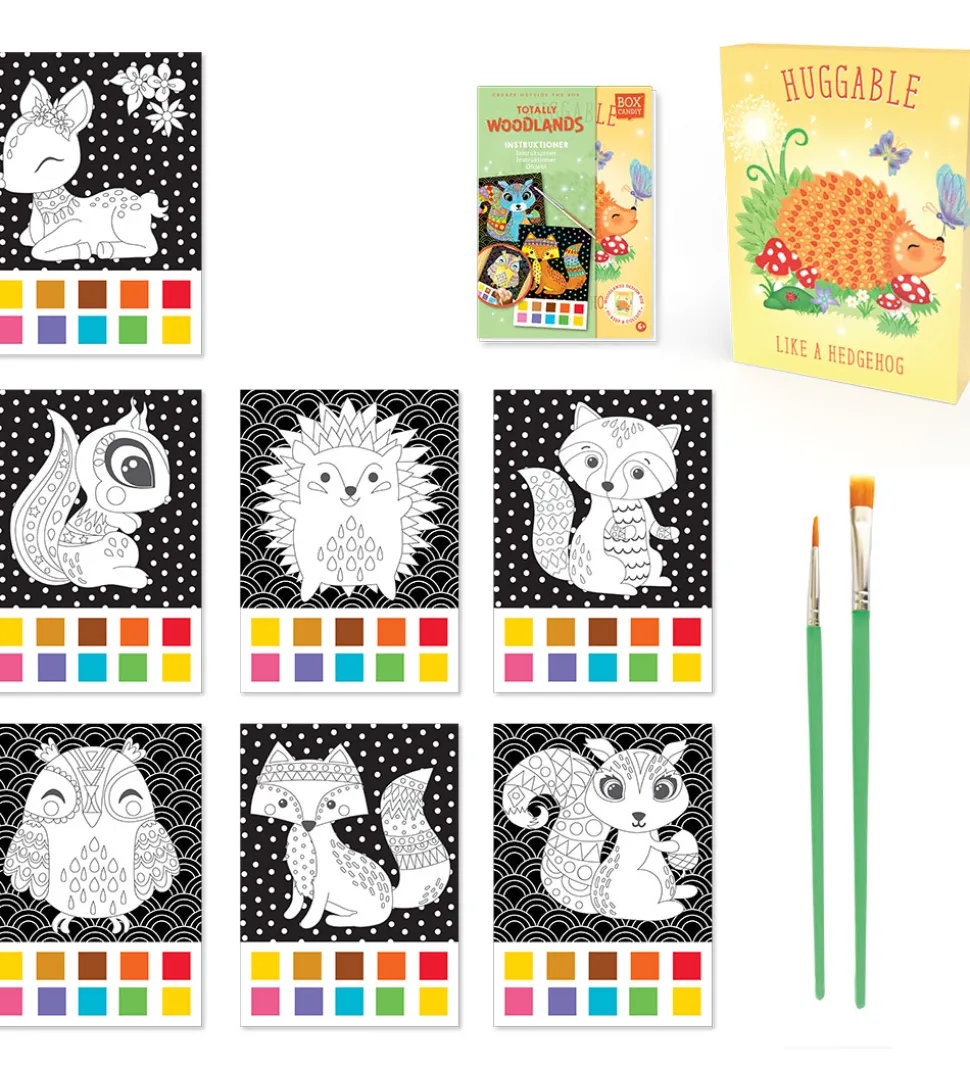 Spændende BOX CANDIY kreasæt i form af dette vandfarvekunstsæt med temaet “Totally Woodlands”.