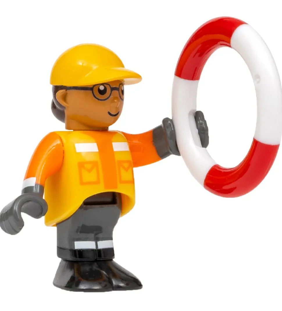 BRIO containerkranen kan med en magnet løfte containere af både tog og lastbiler. Kranen kan bevæge sig op og ned, og førerhuset kan dreje og skubbes fra side til side Under kraen er der to spor, og der er palds til at alle containerne kan palceres sikkert på havnen.