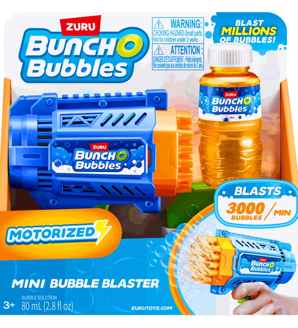 Bunch O Bubbles sæbeboblepistolen gør legen med sæbebobler ekstra sjov. Sæbeboblepistolen er motoriseret, så når mundingen er dyppet i sæbeboblevand, er det bare at trykke på aftrækkeren og fyre sæbebobler af sted.