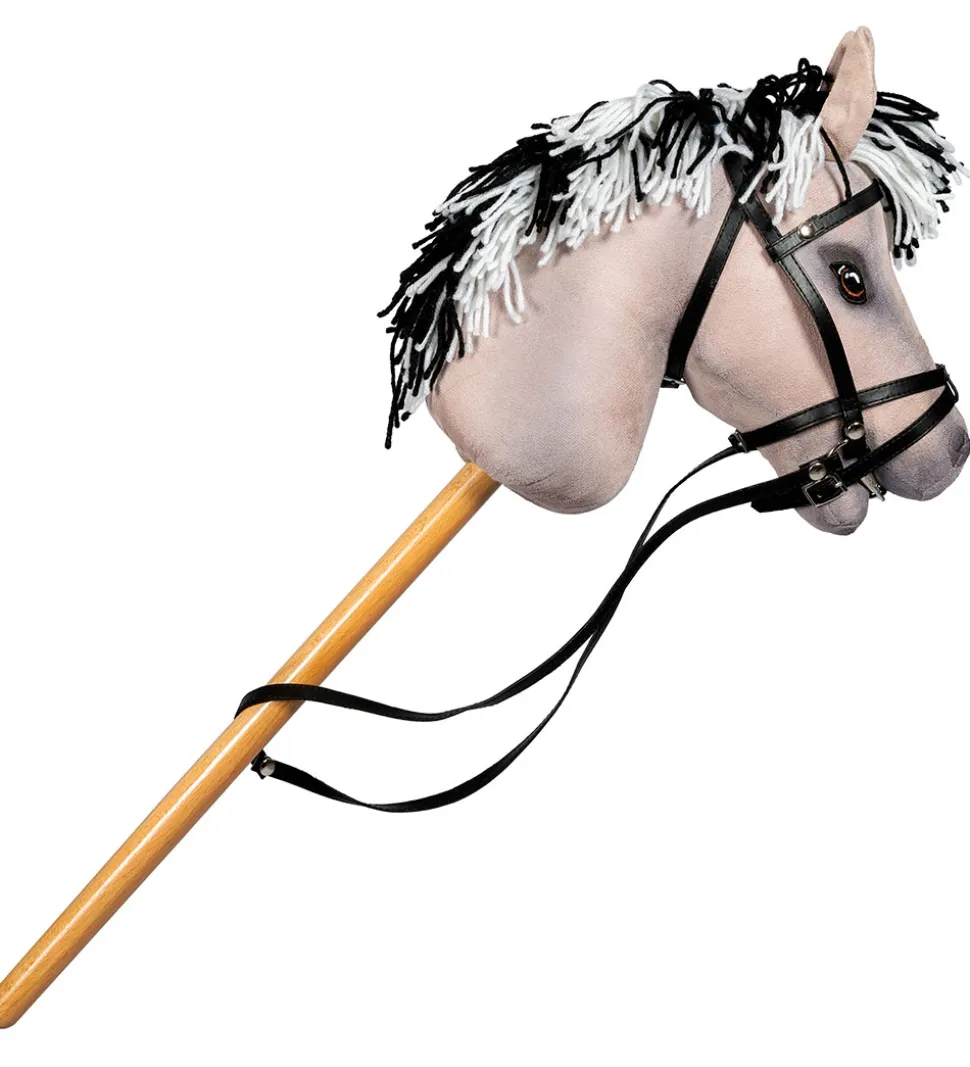 Fin by ASTRUP kæphest i lysegrå med mørkegrå detaljer, og med en sort og hvid manke.