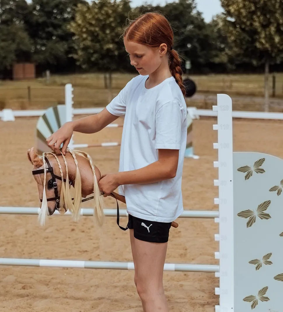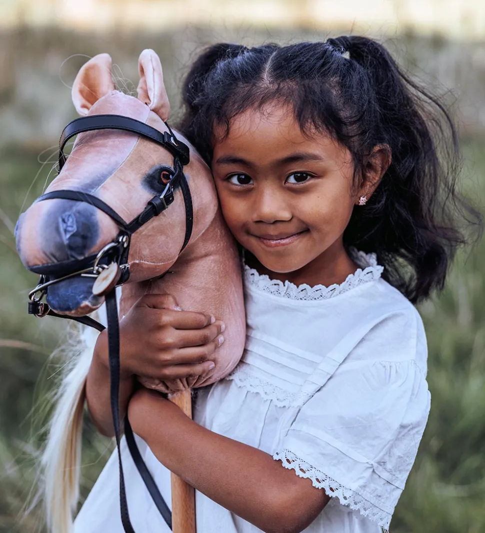 by ASTRUP kæphesten har sort hovedtøj på, som kan tages af og på. På den ene side af hovedtøjet sidder et rundt navneskilt med navnet “Spirit” på den ene side og by ASTRUPs logo på den anden side. Kæphesten har et blødt hoved med en manke af nylon som kan friseres og sættes i flotte frisurer. Kæphesten er skabt til fantasifulde og kreative lege.