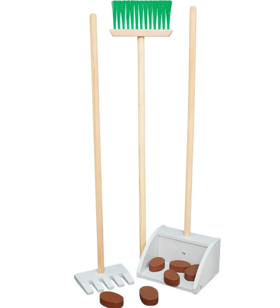 by ASTRUP staldsættet er med til at gøre legen med kæpheste ekstra virkelighedstro. Staldsættet indeholder alt det nødvendige til at holde kæphestenes stald ren.