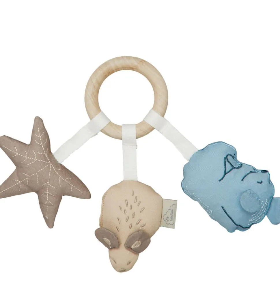 Yndig Cam Cam Copenhagen rangle i lyst træ med et brunt blad, en brun mus og en blå mus med fine syningsdetaljer.