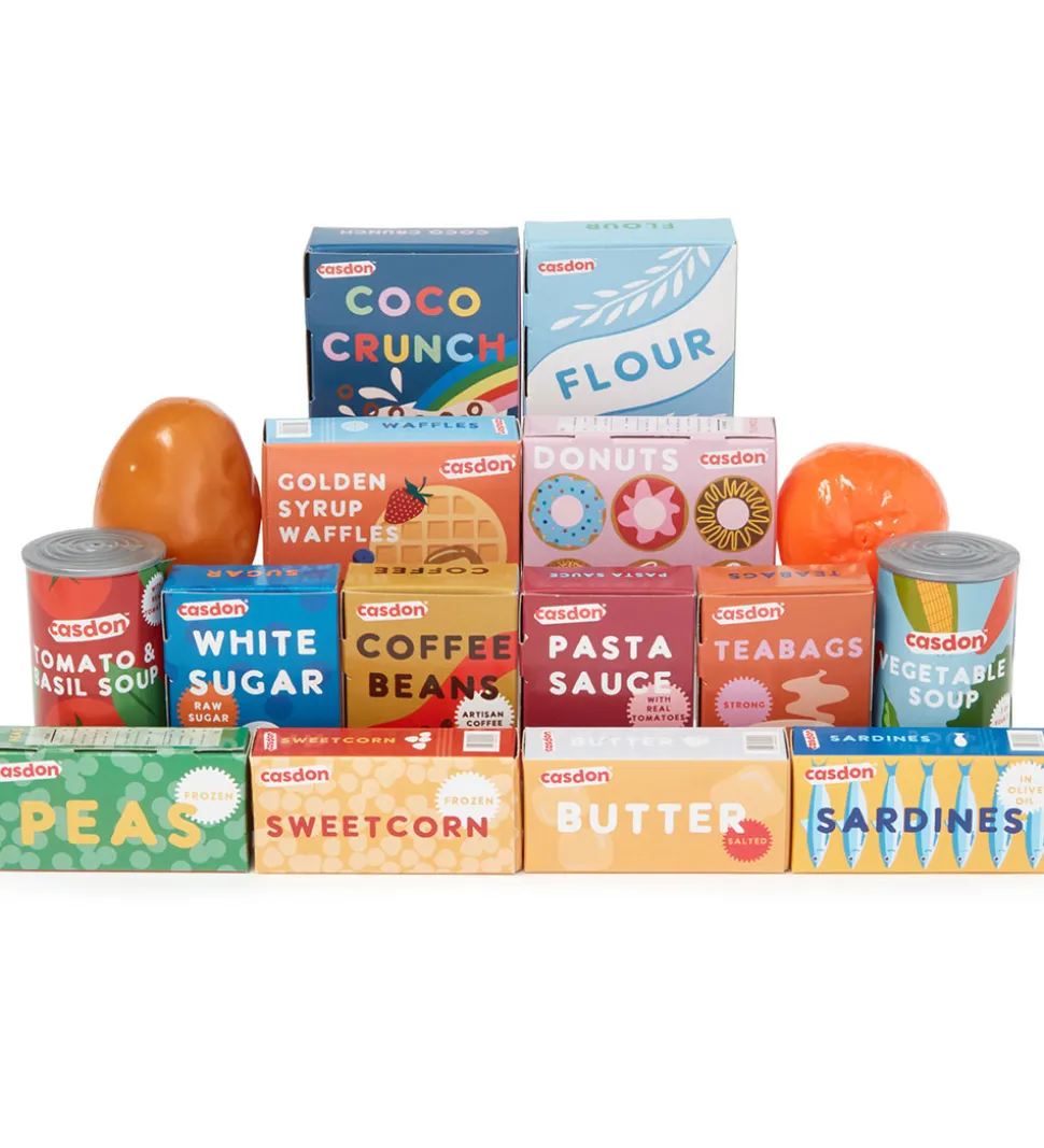 Sjov Casdon indkøbsvogn med legemad i form af en masse indkøbsvarer.