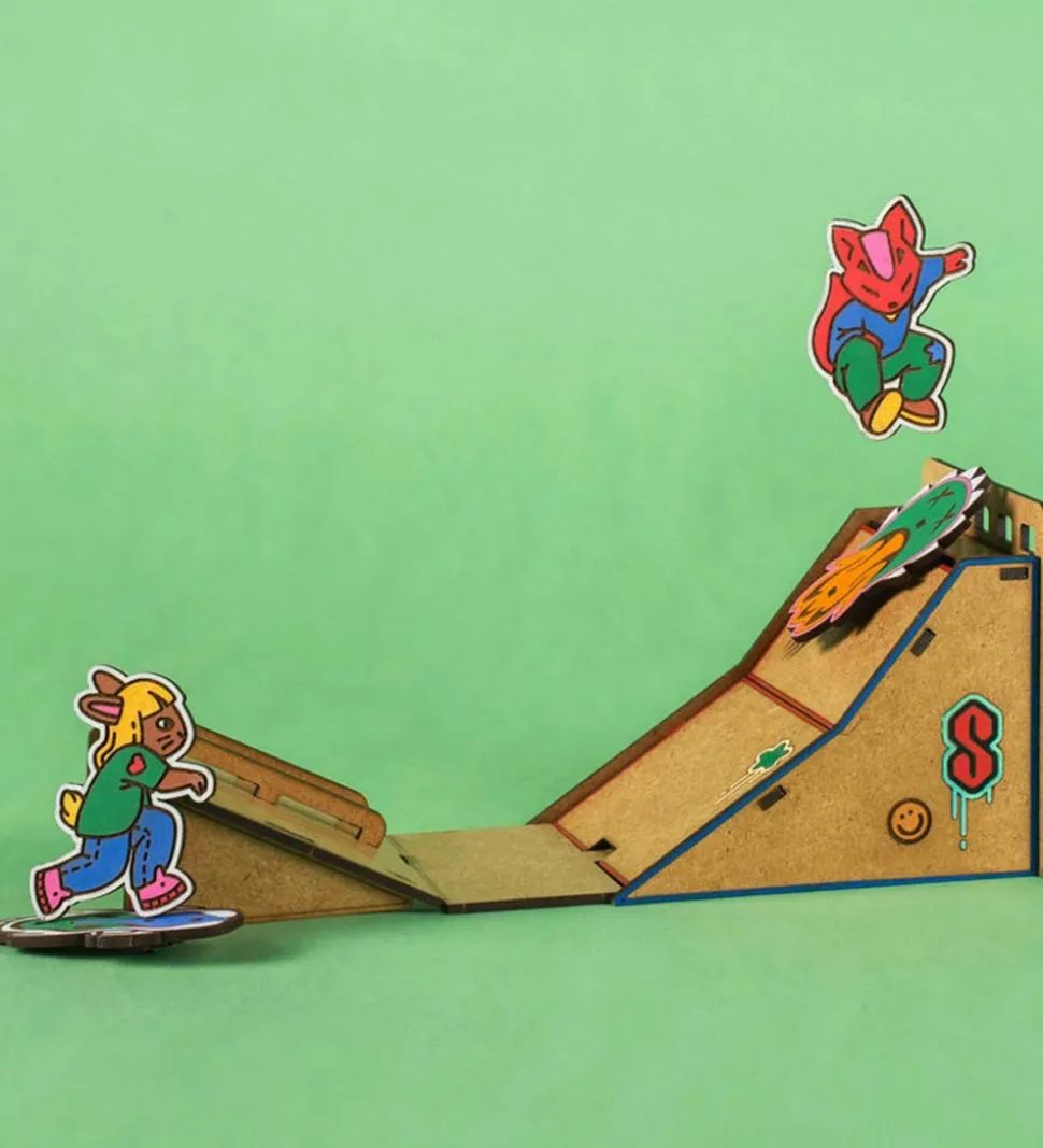 SejtCrateit kreasæt med motiver til en skaterbane i den fantasifulde verden Suntopia, hvor de to venner Spark og Loud.