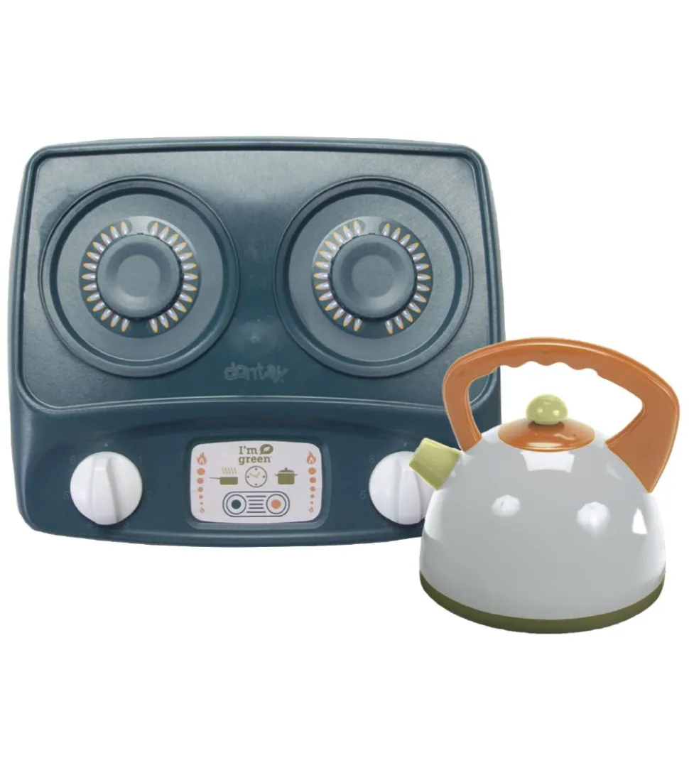 Sjov Dantoy kogepladesæt, der enbstår af en kogeplade og en kedel med låg.