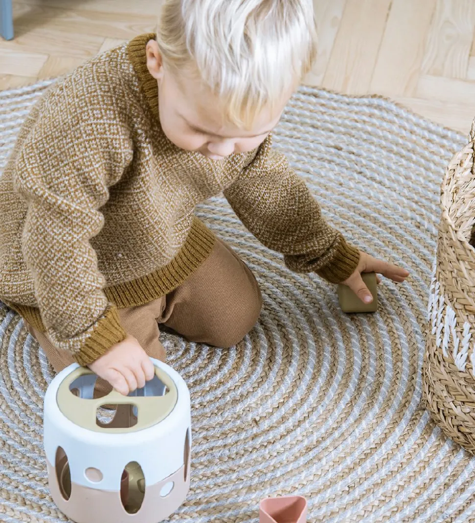 Dantoy puttekassen er rund med mange forskellige dele og former. Leg med puttekassen hjælper barnet med at udvikle deres logiske tænkning, finmotoriske færdigheder og til at genkende forskellige geometriske former.