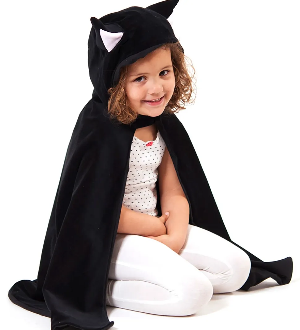 Flot Den Goda Fen udklædning, som forestiller en sort kattekappe med fine, rosa ører.