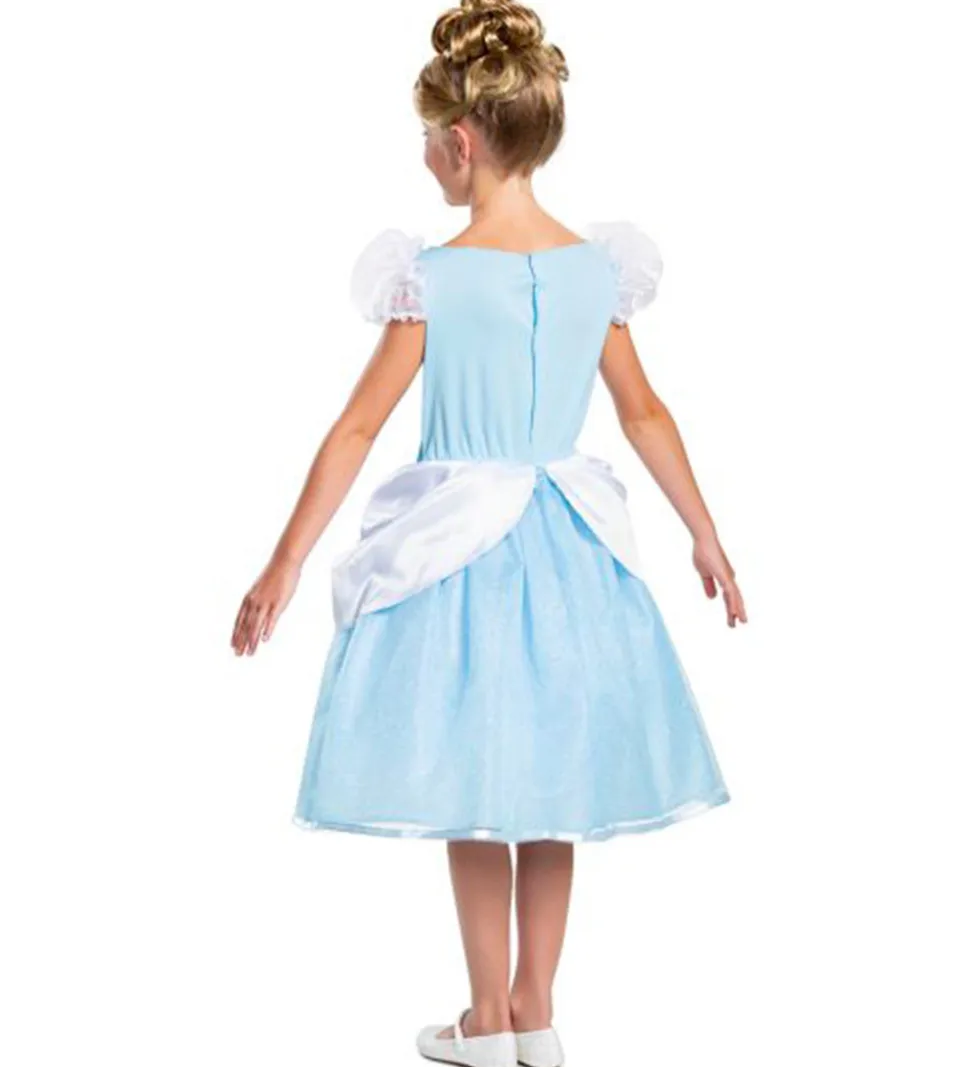 Fin Disguise udklædning af Askepot. Udklædningen består af en kjole i blå med sølv detaljer, samt hvide skuldre og et hvidt skørt.