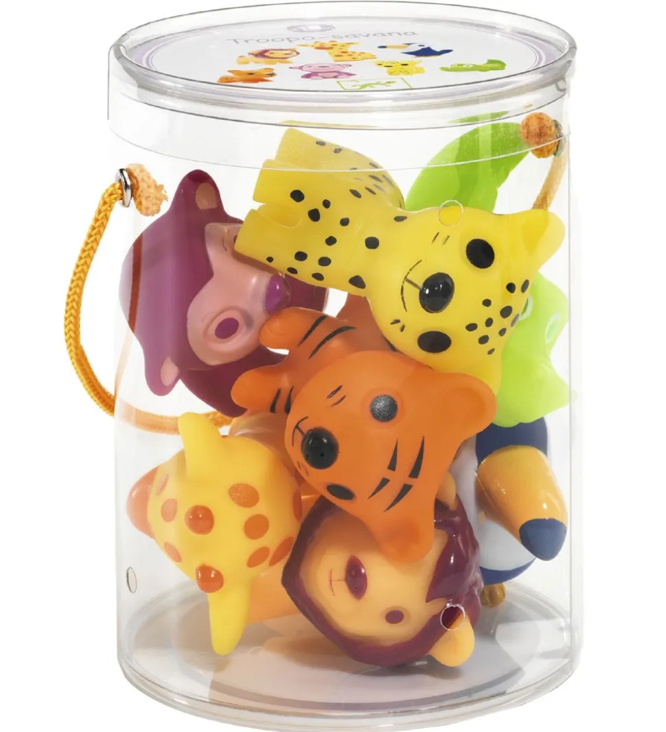 Djeco bøtten består af 7 dyr som kan leges med i uendelige timer, og de kan også bruges som badelegetøj. De er lavet i blød gummi.