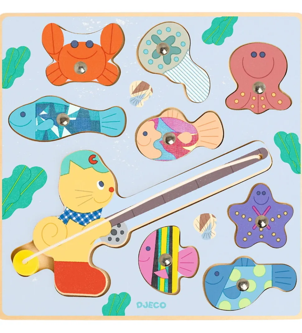 Charmerende Djeco magnetlegetøj med fisketema. Djeco legetøjet har sjove dyremotiver som krabber, fisk og en blæksprutte i farverige toner, der stimulerer fantasien og finmotorikken hos børn.