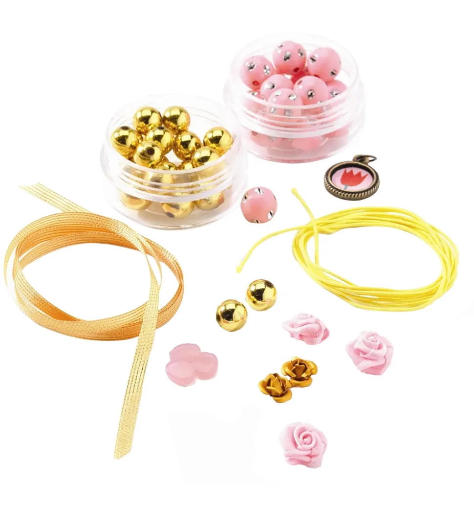 Djeco perlesættet kan bruges til at lave fine smykker med smukke vedhæng. Der medfølger også tråd i 5 forskellige farver, så det er lige til at gå i gang med at lave fine smykker.