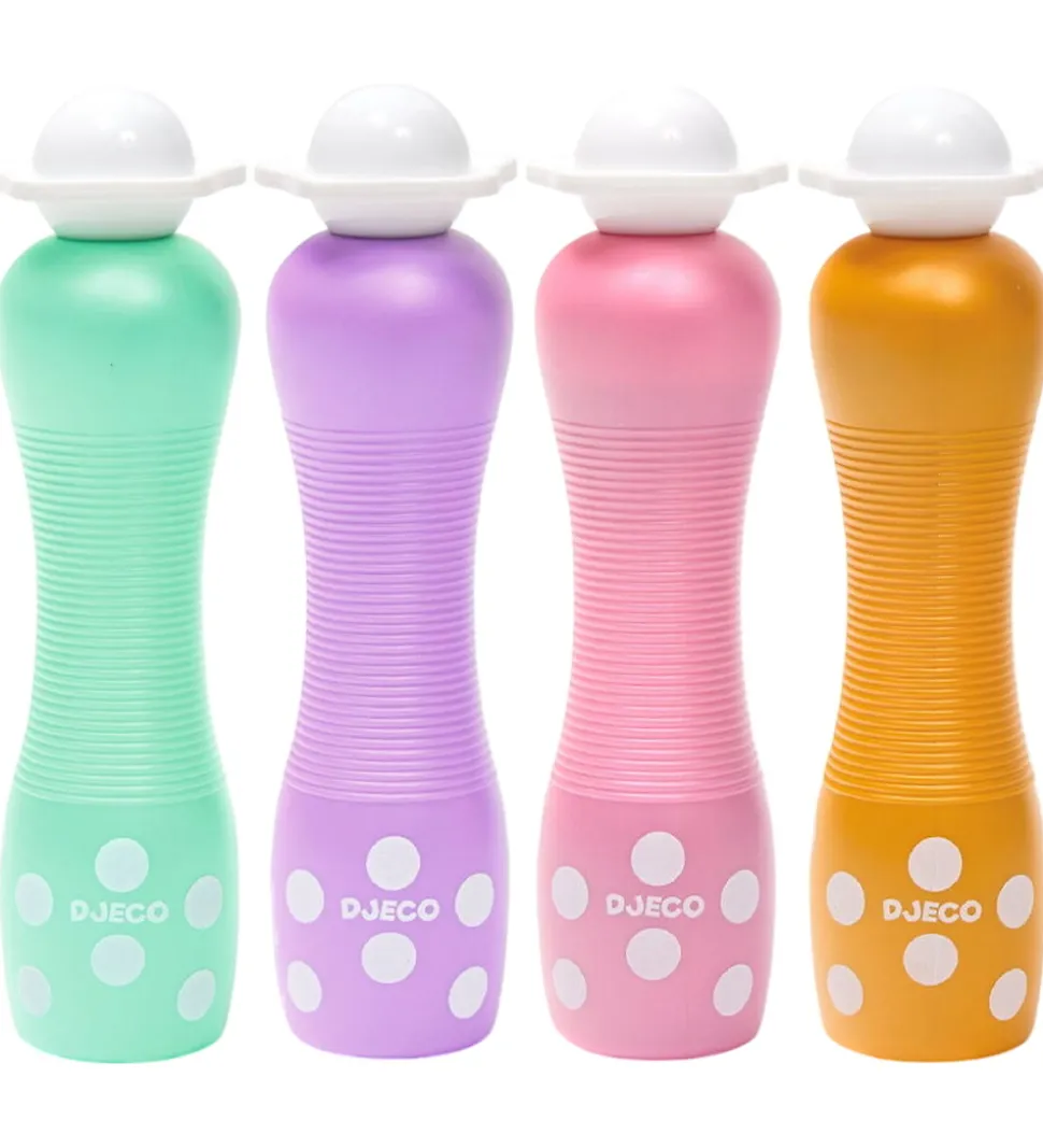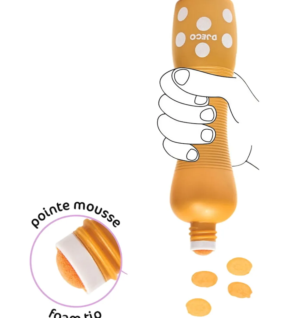 Skønne Djeco prikmarkører i grøn, lilla, lyserød og orange. Djeco er kendt for at skabe kreative produkter til børn, og dette farvesæt med store prikmarkører gør det nemt at lave flotte, farverige prikker. Perfekt til små kunstnere.