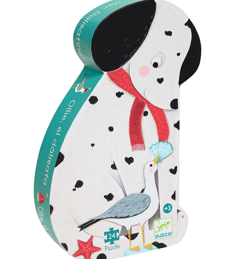 Djeco puslespillet har en firkantet, aflang form og består af 24 brikker i kraftigt pap.