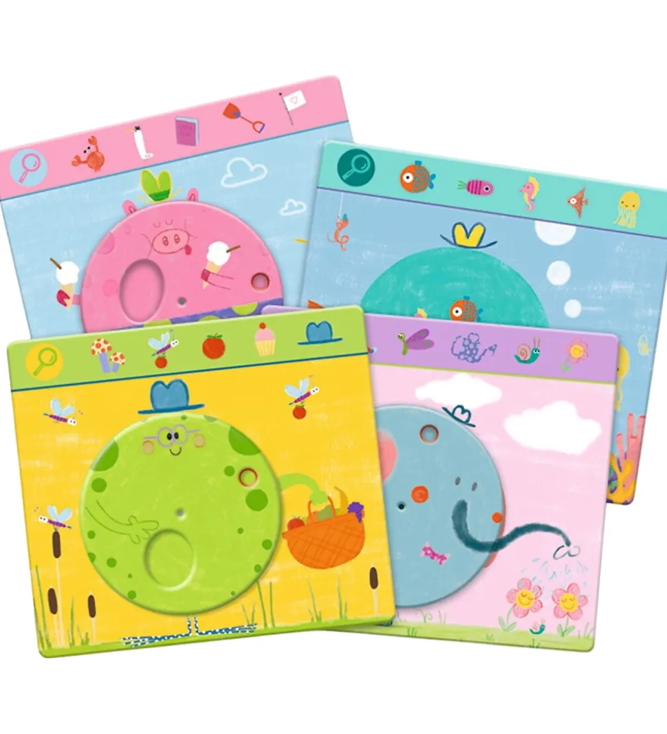 Underholdende Djeco spil med dyretema. Djeco spillet består af et rundt hjul, hvor det gælder om at søge og finde. Man drejer hjulet for at finde forskellige dyr og genstande.