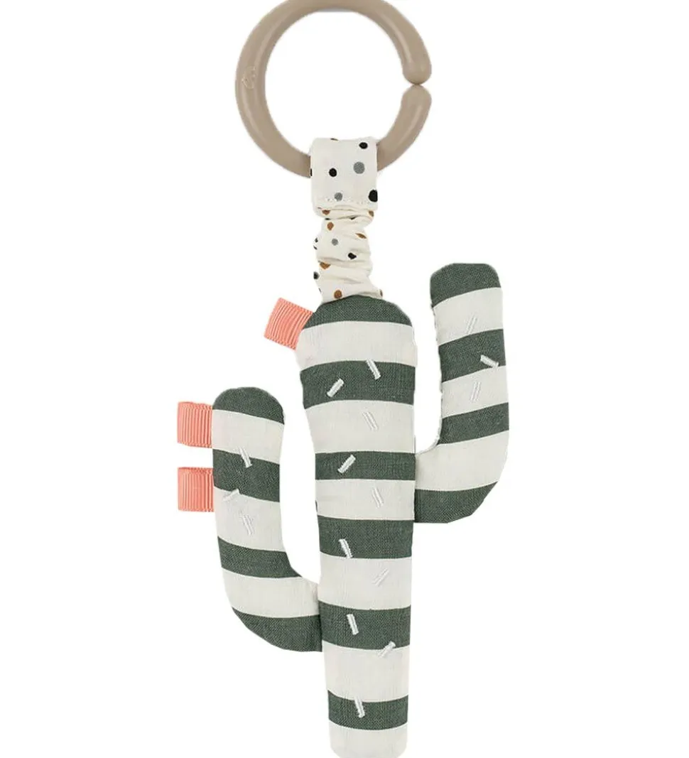 Det buede stativ sættes nemt og hurtigt fast på tæppet med velcro, og det kan ligeledes fjernes, så tæppet kan bruges for sig selv. Legetøjet kan placeres med praktiske C-ringe 13 forskellige steder på stativet.