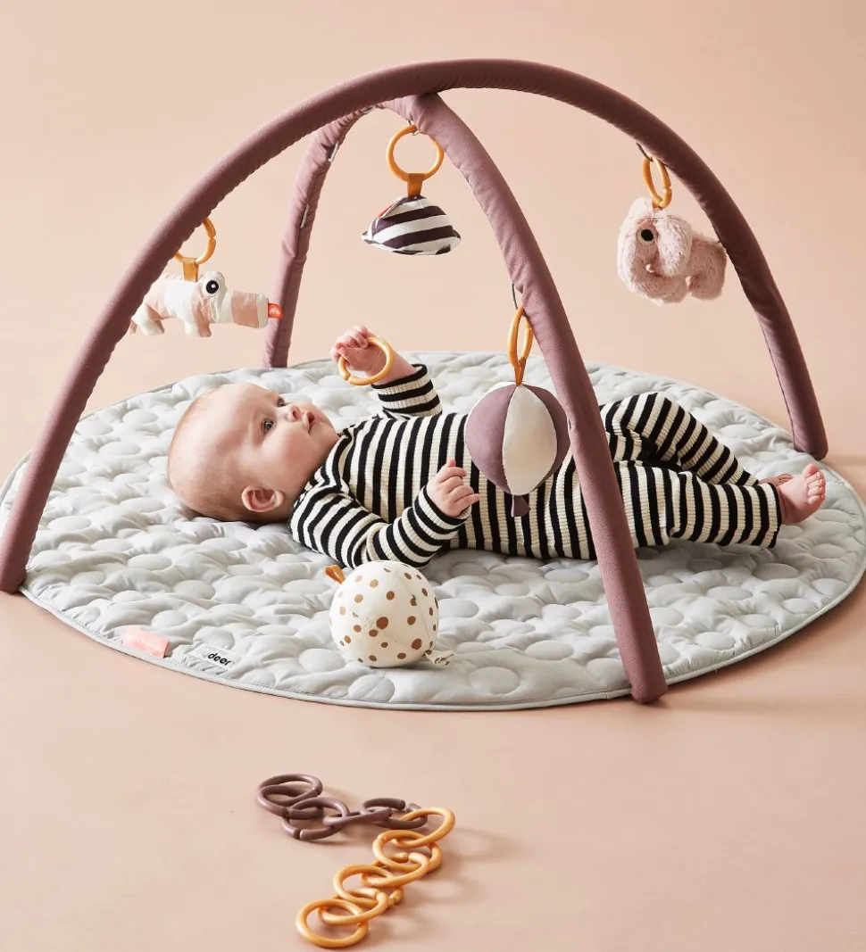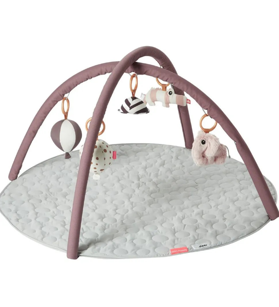 Praktisk Done By Deer aktivitetstæppe i mørk rosa og lysegrå nuancer.