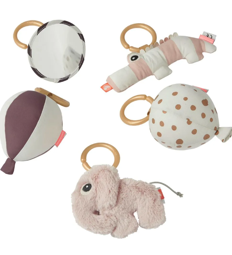 Tæppet er utrolig blødt og tykt med et quiltet design, så baby ligger behageligt. Til tæppet medfølger der 5 forskellige aktivitetslegetøj – to bolde, elefanten Elphee, krokodillen Croco og et spejl. Boldene siger en dejlig ringlende lyd når de bevæges og elefanten bjælder i maven. Krokodillen knitrer når man rører ved den og spejlet er med til at optimere barnets nysgerrighed. Alle 5 aktivitetslegetøj er med til at stimulere babys sanser.