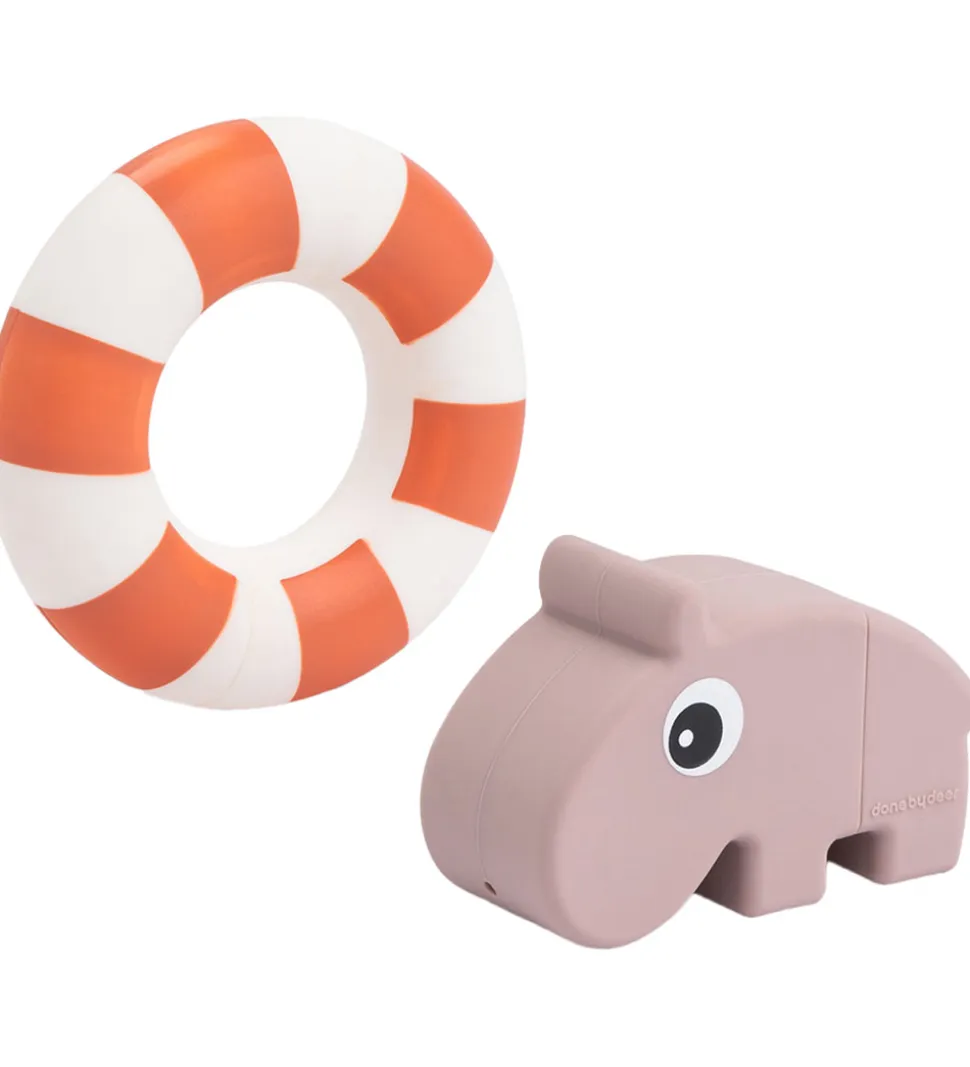 Sjovt Done By Deer badelegetøj bestående af flodhesten Ozzo og en badering.