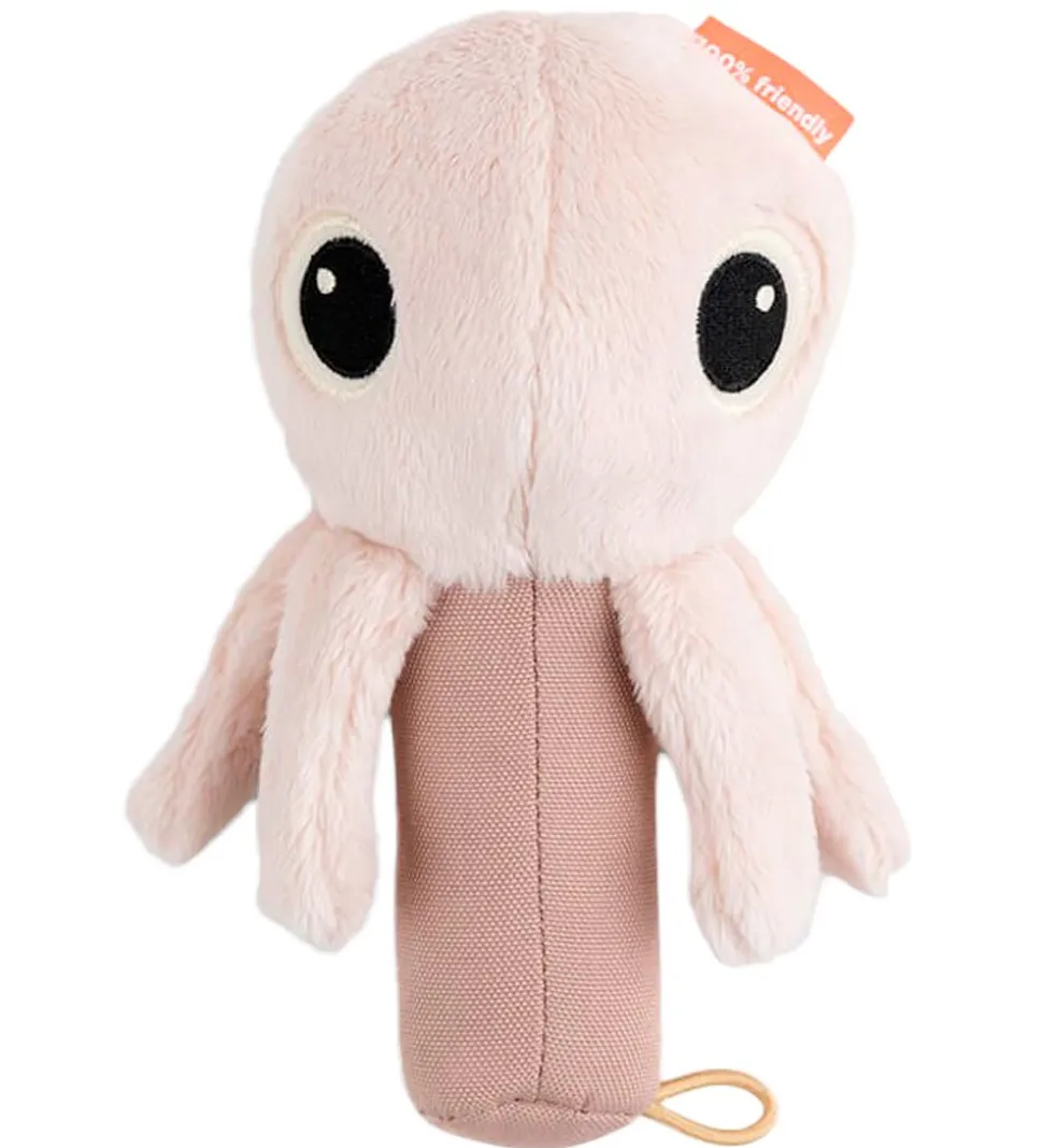 Sød Done by Deer rangle i rosa med en sød blæksprutte med broderede øjne.