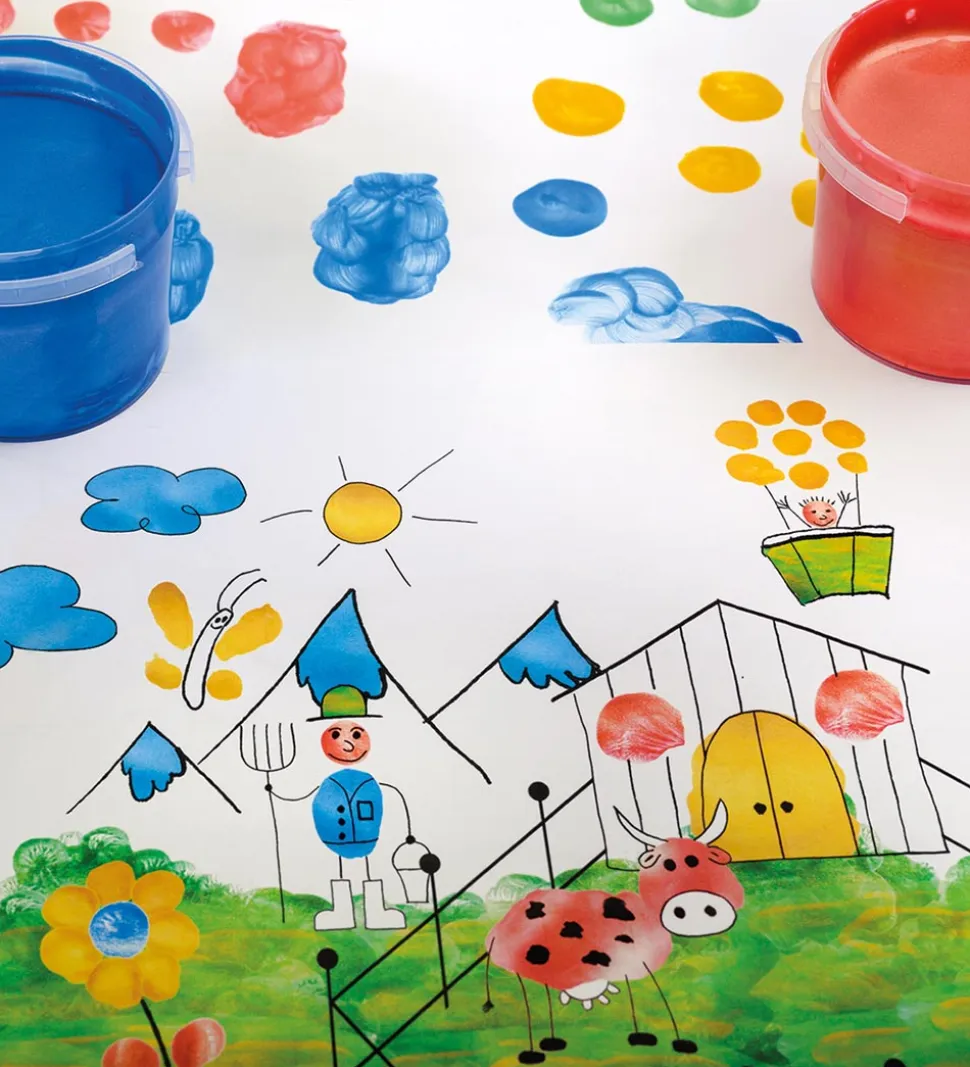 Hver bøtte indeholder 100 ml fingermaling.