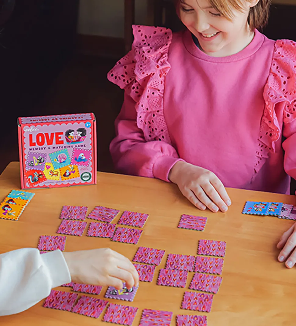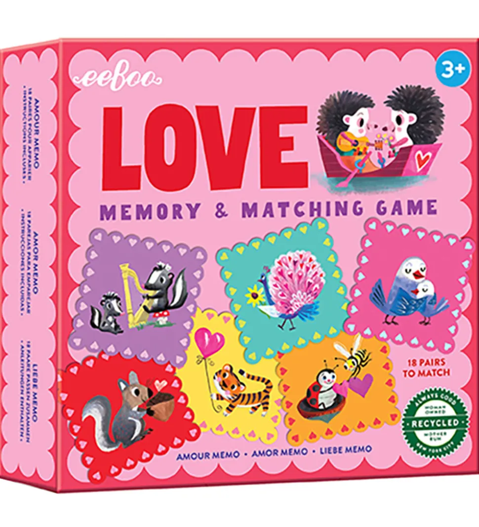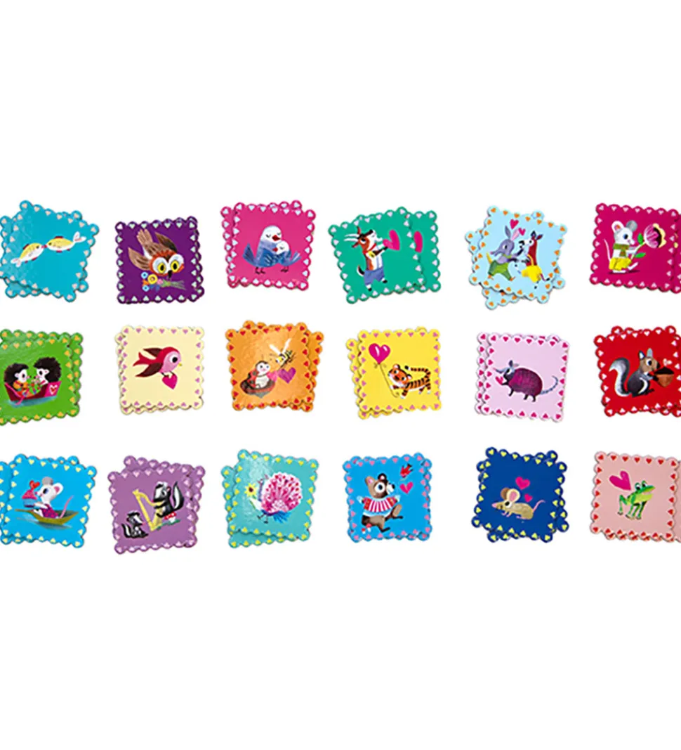 Sjovt Eeboo huskespil, bestående af 36 brikker á 18 par, som alle er med motiv af forelskede dyr.