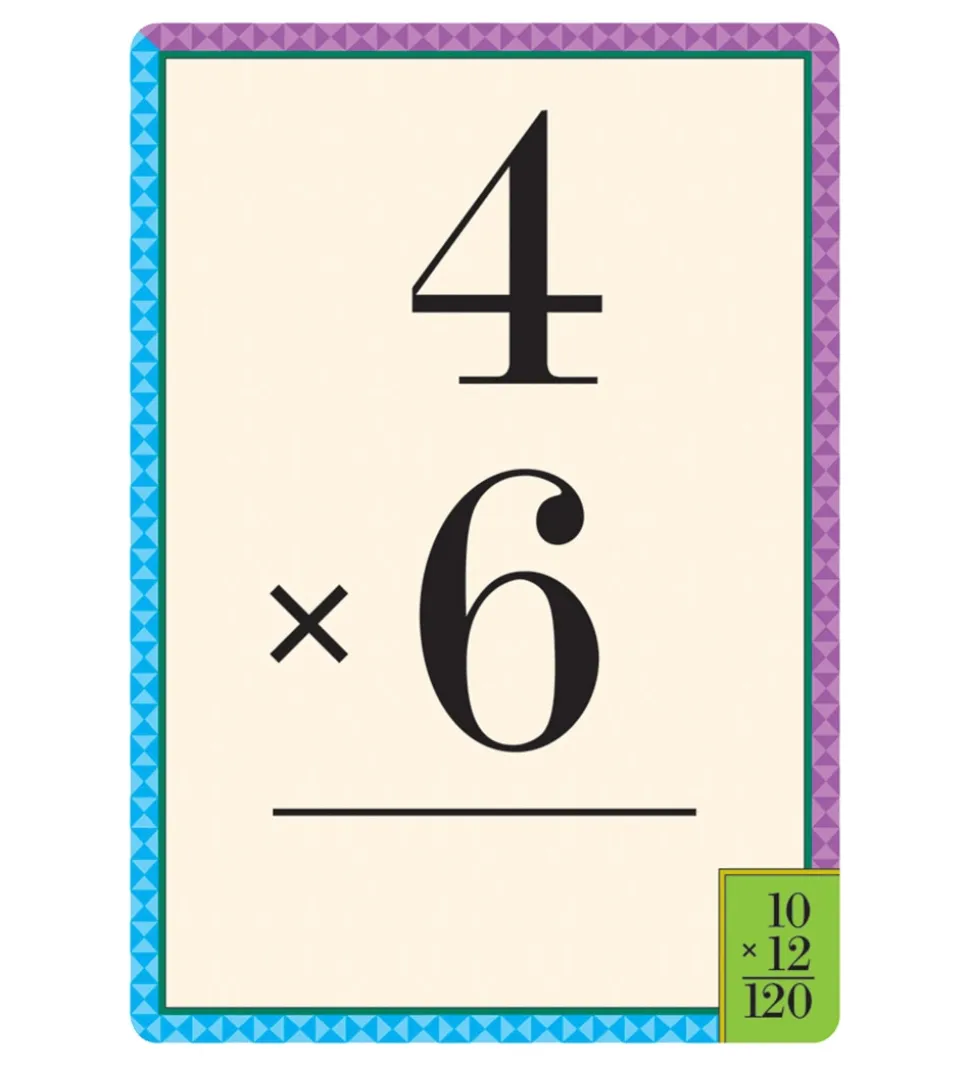 Eeboo læringsspillet lærer barnet at gange to tal sammen. På hvert kort er der regnestykker på begge sider. Når barnet har lavet regnestykket kan kortet vendes om, hvor man kan tjekke om svaret er korrekt.