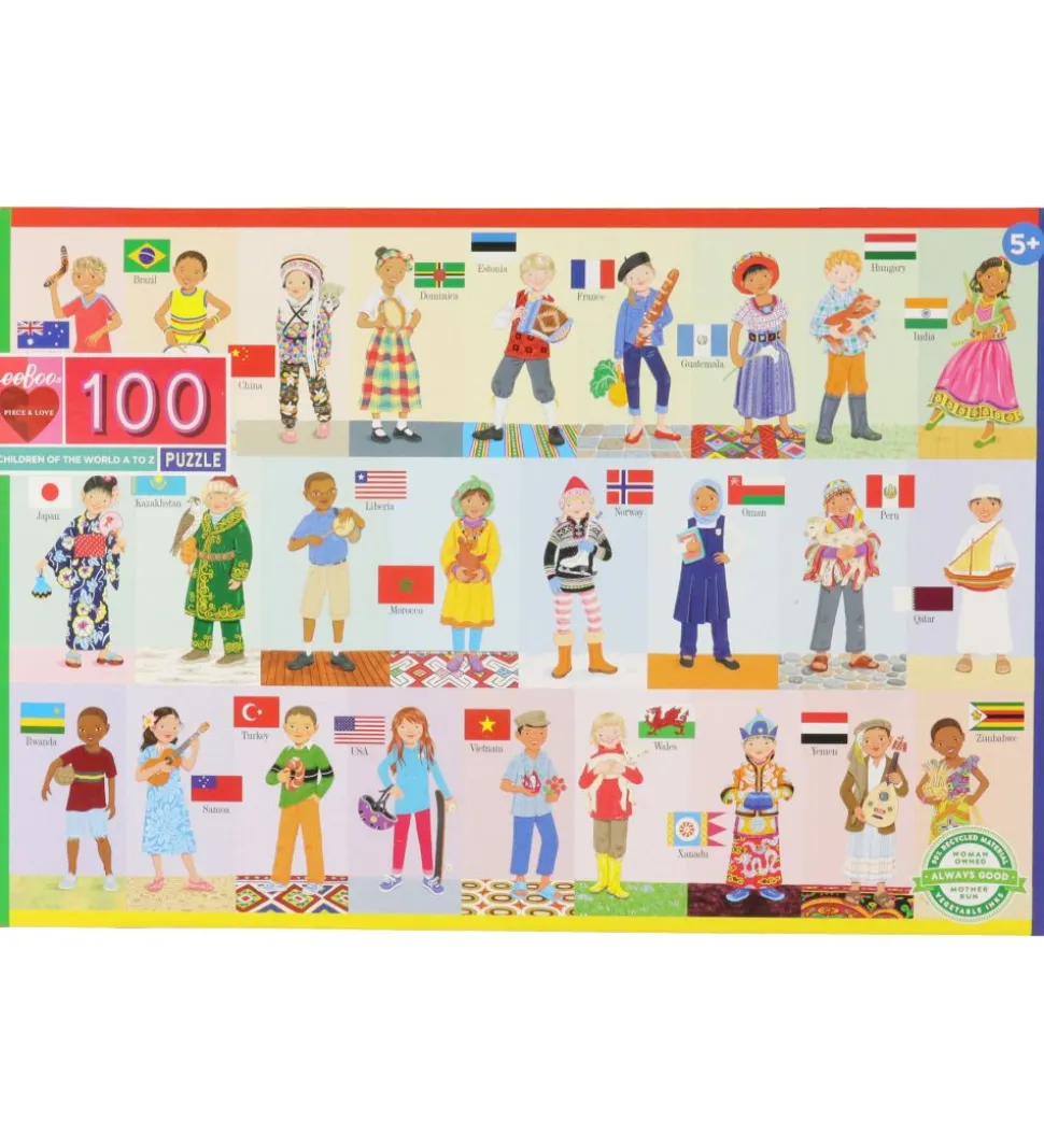 Sjovt Eeboo puslespil, bestående af 100 brikker med verdens børn.
