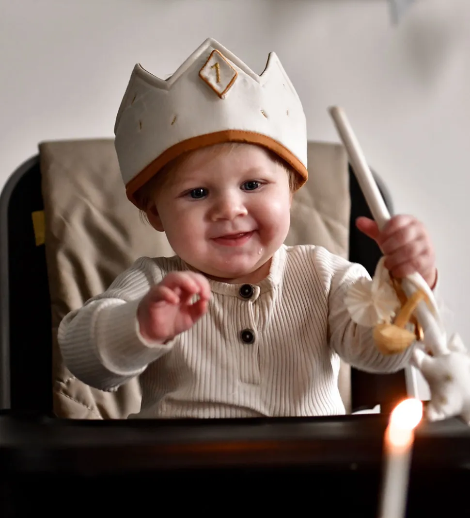 Sød Fabelab fødselsdagskrone i beige med en inderside i karrygul.