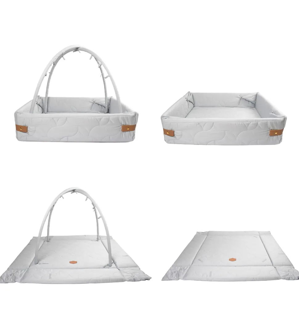 Fin Filibabba aktivitetsnest i lyseblå med vattering og quiltet struktur.