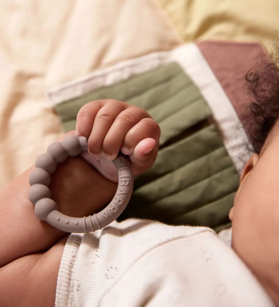 Skønne Filibabba bideringe solgt i en 2-pak med farverne støvet grøn og varm gråbeige