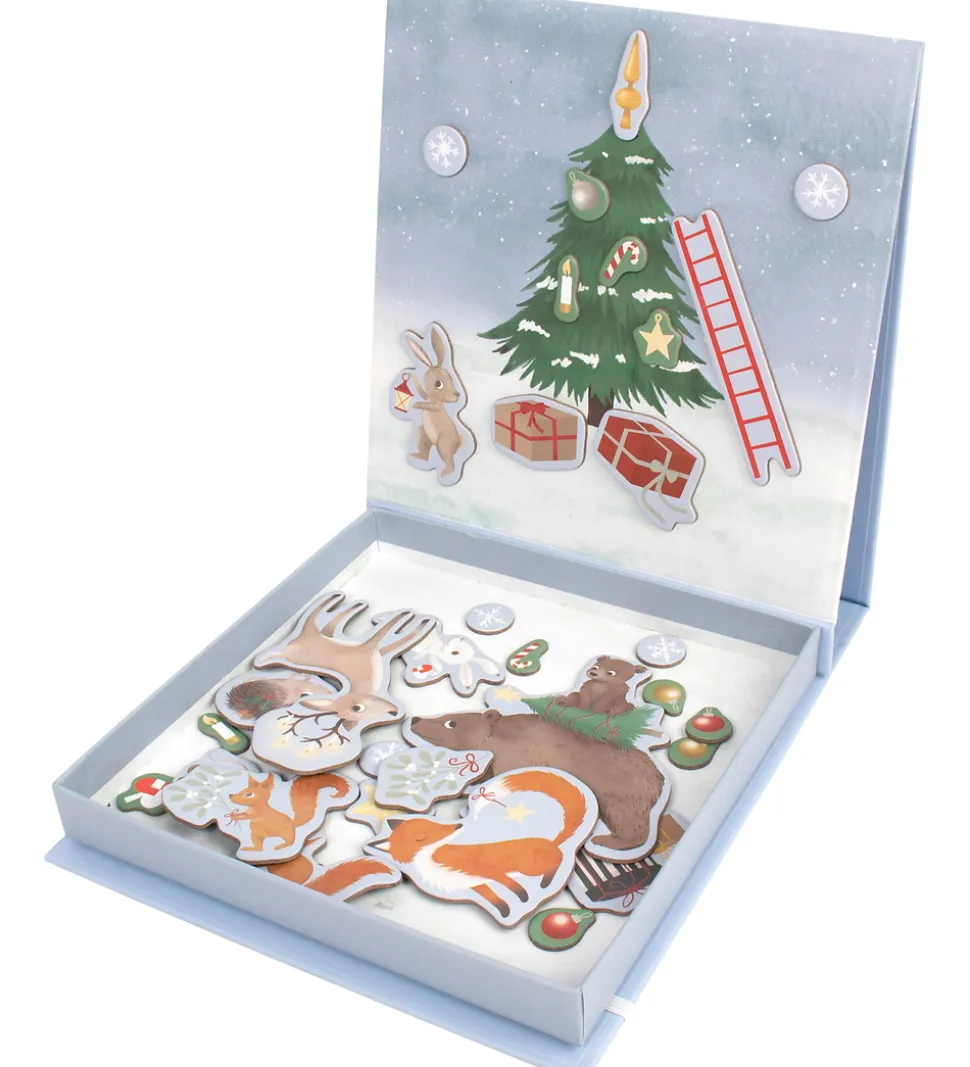 Flot Filibabba magnetlegetøj bestående af en lyseblå æske med juletema. Æsken indeholder 38 små magneter med julemotiver, som kan sættes på indersiden af æsken, og lave hyggelige billeder. Perfekt til fantasifuld leg og kreativ udfoldelse i juletiden.