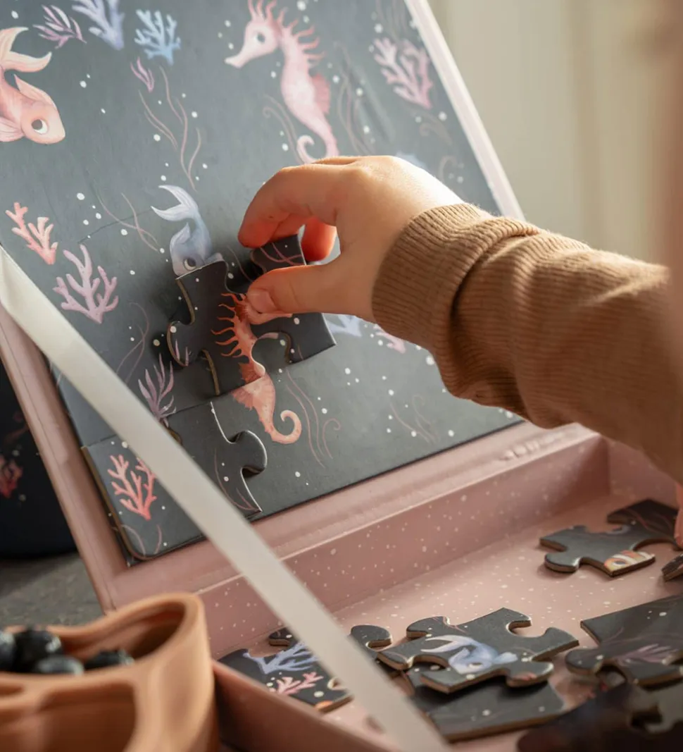 Sjovt Filibabba magnetisk puslespil med motiv af søde søheste.
